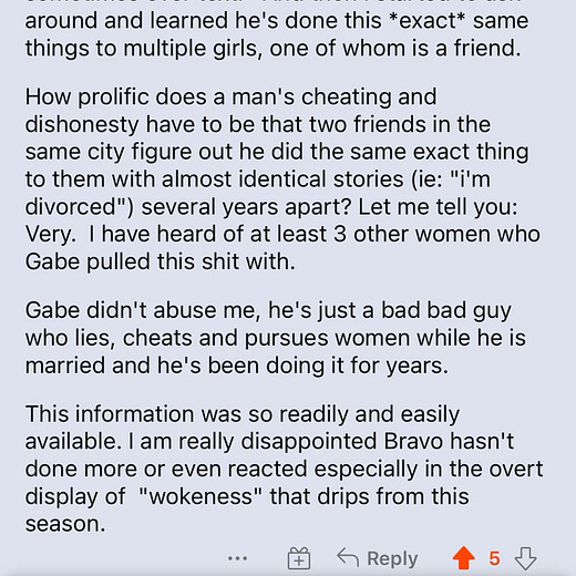 Others have been digging up some of the Reddit discourse going on around Gabe, as well as on other social platforms. These are unverified reports, but the level of detail and the consistency of the narratives feels notable. (I’ve also read more posts beyond these on Reddit.)